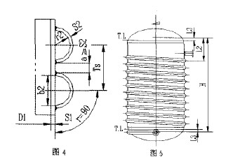 半圓管夾套可以采用單頭或雙頭螺旋結(jié)構(gòu)(見圖4),如果將半圓管夾套視為加強圈進行計算時,必須滿足以下要求: